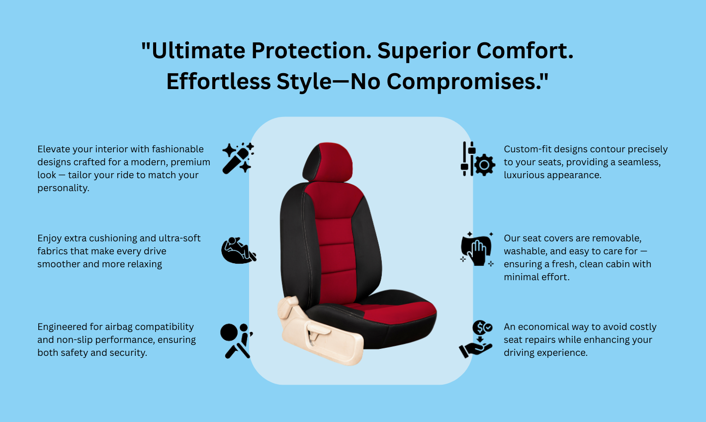 Car seat covers protect your original seats from wear, stains, and spills while enhancing the aesthetics of your car’s interior. They can also provide additional comfort depending on the material.